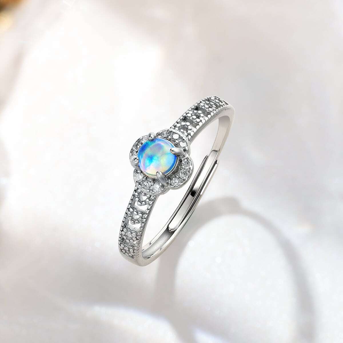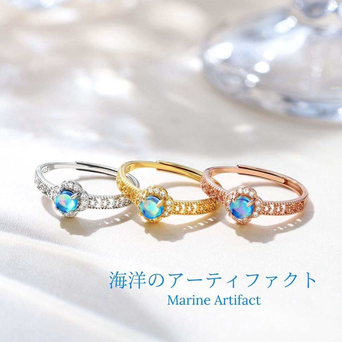 「Artifact Blossom」は、4㎜のラウンドカボションカットのルースを用いたリングです。