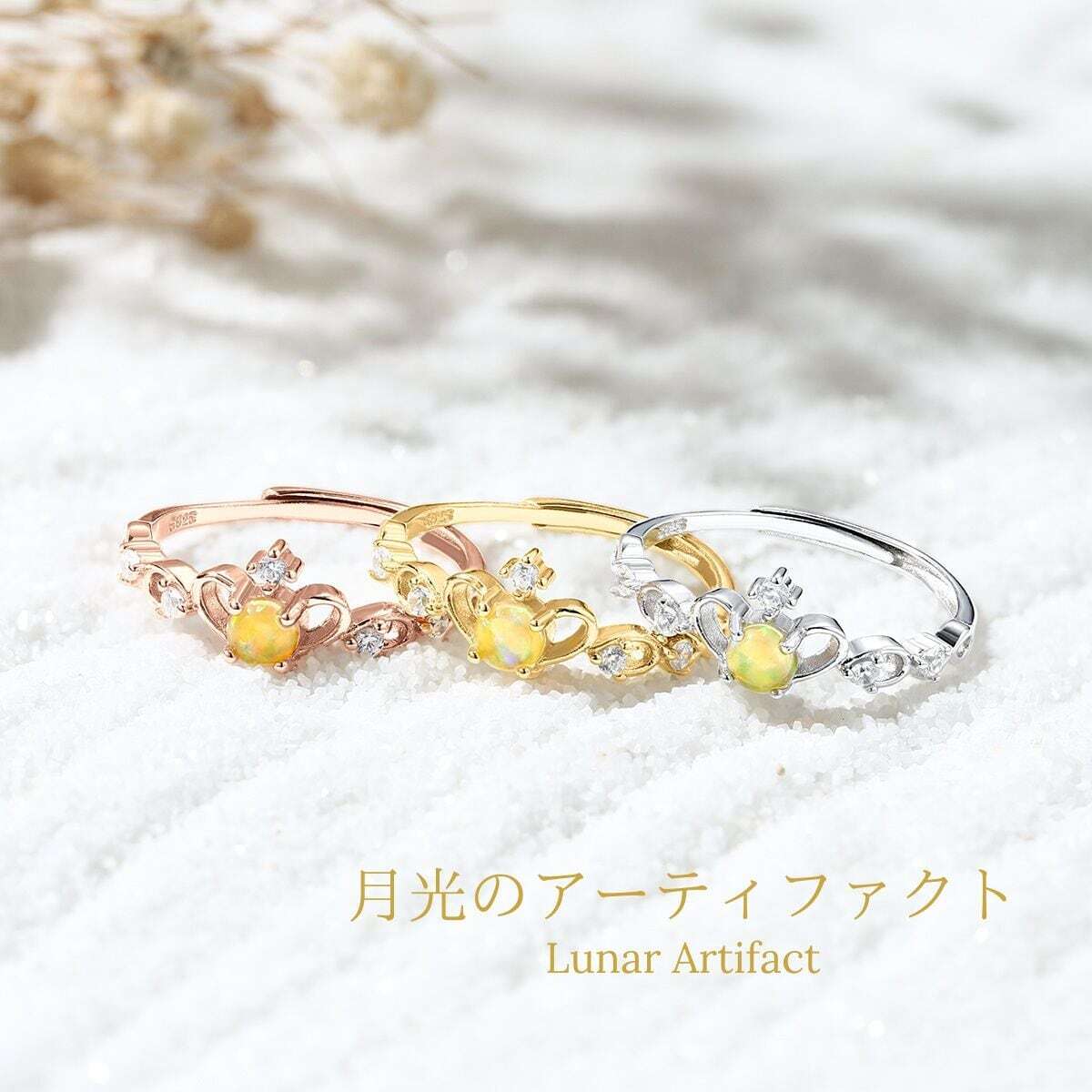 金具の色は、シルバー、ピンクゴールド、イエローゴールドの3種類からお選びいただけます。それぞれの色が、アーティファクトの輝きを引き立て、異なる雰囲気を演出します。
